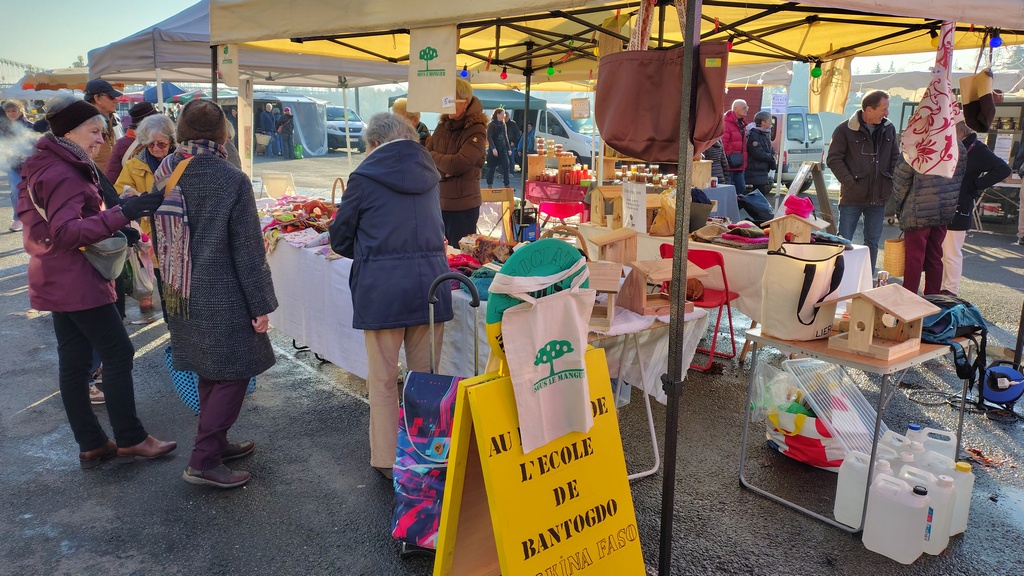 - Au marché du samedi 13/12 à La Réole 375 € de recette nette grâce encore à une mobilisation importante des vendeuses et vendeurs ainsi que de la sympathie de nos nombreuses connaissances sur place qui par leurs achats ont soutenu notre action pour la cantine de Bantogdo. Le beau temps avec un beau soleil d’hiver a rendu agréable cette matinée en plein air. Une attention particulière aux lève-tôt qui ont fait la mise en place du stand avant le lever du jour.